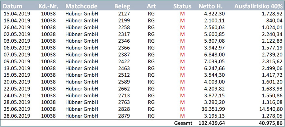 Ausfallrisiko von Rechnungen vorsichtig ein. Nicht in diese